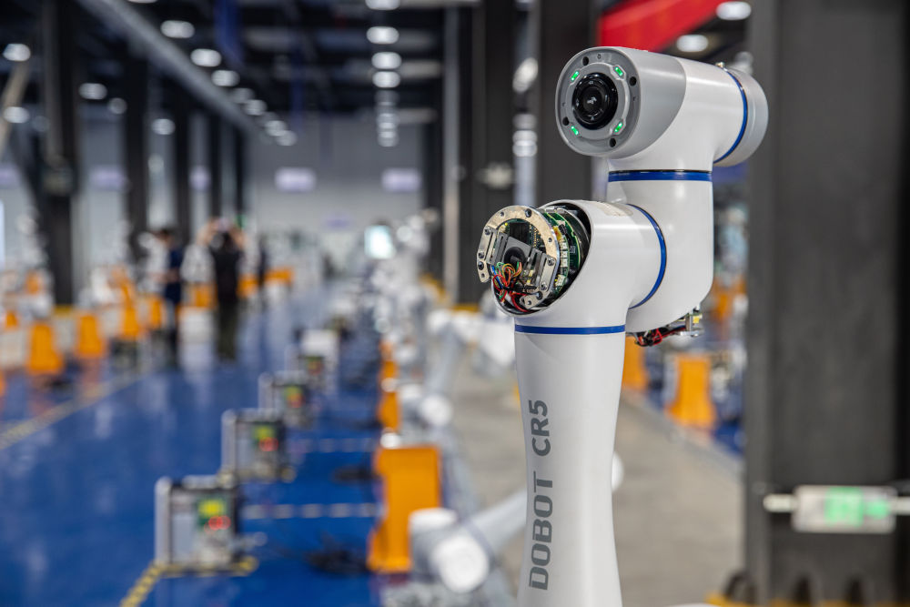 7月1日,山东省日照市越疆智能科技有限公司技术人员在测试协作机器人。