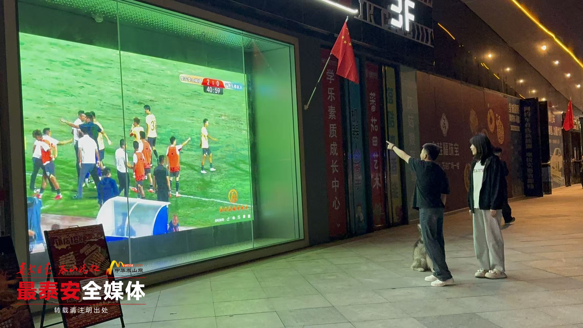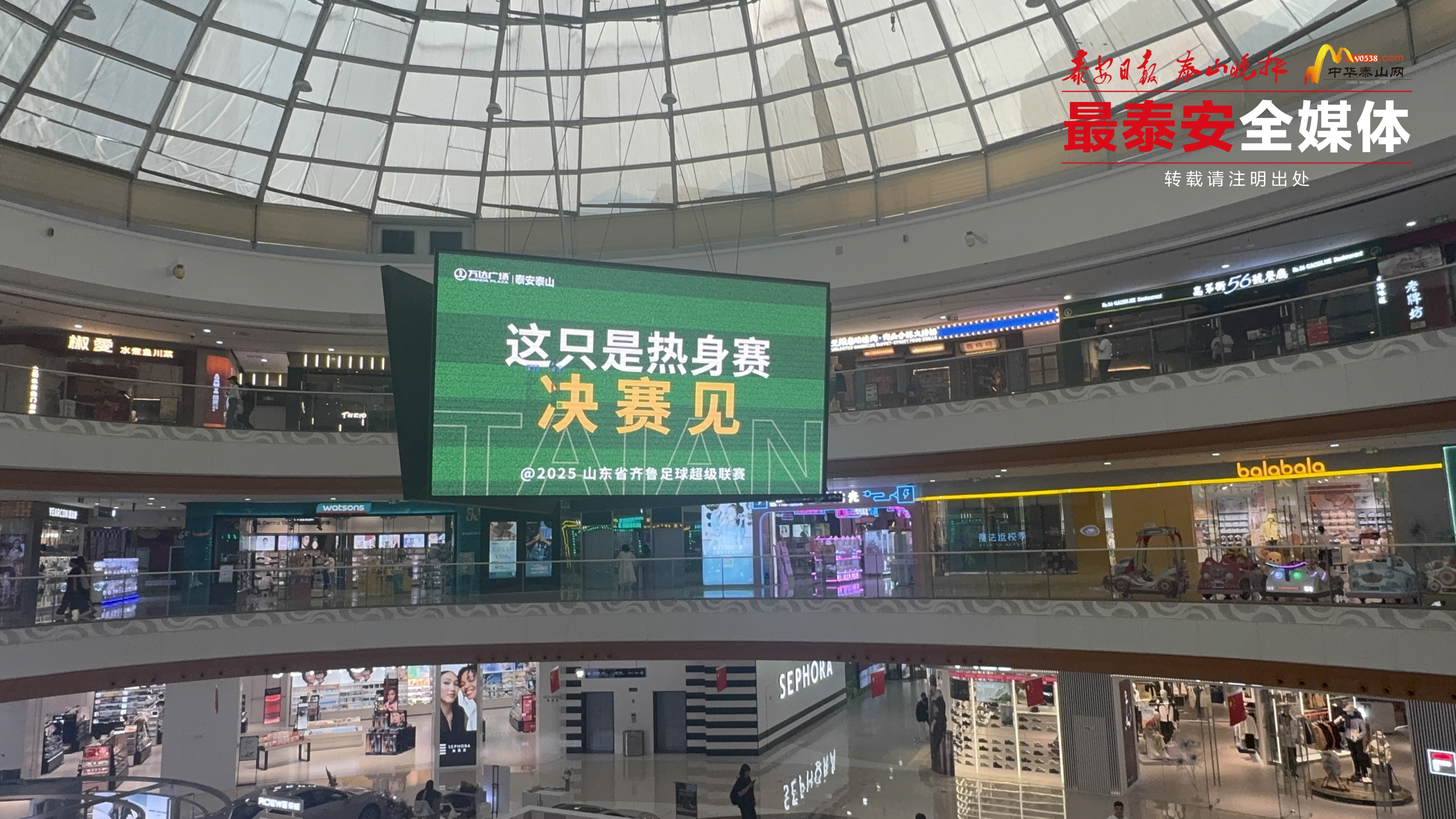 在泰山吾悦广场小米之家门店,店内工作人员忙着调试展示电视,为即将进行的齐鲁超赛的直播做着准备;泰山吾悦广场户外大屏幕上,滚动播放着赛事的“宣战”口号,这里也成为比赛时的“第二现场”。“针对此次齐鲁超赛‘第二现场’观赛活动,我们进行了一番精心策划。赛前,我们启动‘全城应援’计划,利用广场外立面的LED巨幕为泰安队呐喊助威。10月1日比赛当天,我们还搭建观赛区实时直播比赛,设置多轮互动抽奖,回馈球迷支持。”泰山吾悦广场总经理孙大路介绍,在整个国庆期间,泰山吾悦广场联合场内品牌推出了餐饮套餐,运动服饰、户外品牌等进店享受折扣的“球迷专属福利”。