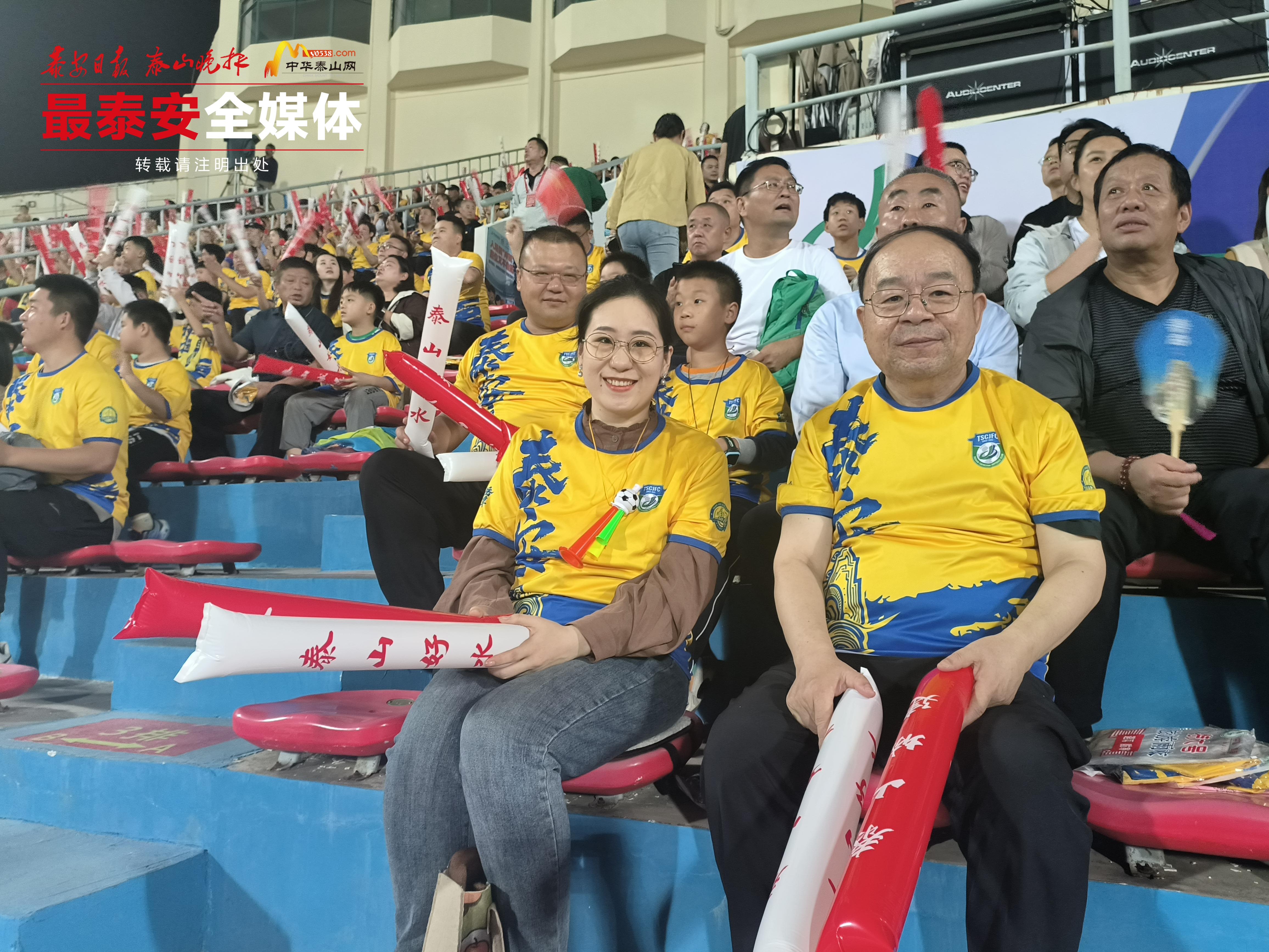 “叫泰哥!叫泰哥!”当足球应声飞入对方球门的那一刻,看台沸腾了,人浪一波接一波,欢呼声久久不歇。市民吴夕与同事一起来为泰安队加油助威,她感慨道:“环顾四周‘山呼海啸’的自家球迷,心中涌起一种‘泰安是我们的地盘’的强烈自豪,很激动。”