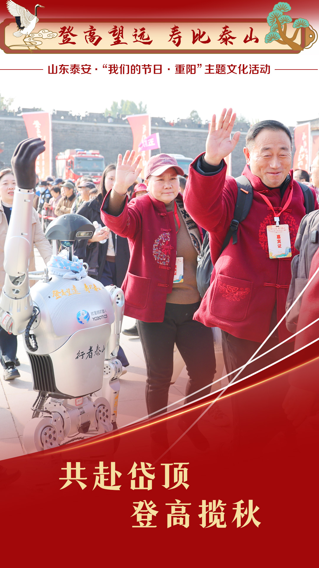 今年,泰安作为全国“我们的节日·重阳”主题文化活动示范点,以“登高望远·寿比泰山”为主题,通过致敬典型、文艺表演、登高体验、礼敬祖国等方式,为广大群众带来一场文化盛宴——