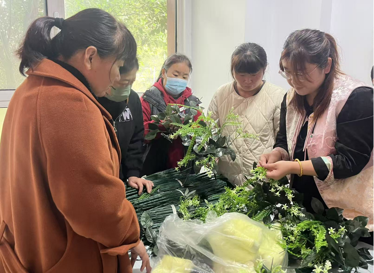 培训课上,老师从手工制品的精细化加工、成品质量把控等方面展开教学,针对花艺装饰的配色技巧、编织篮的耐用性加固等内容进行分步演示与一对一指导。居民们围聚桌前,一边梳理花材、编织框架,一边交流实操经验。“一期培训我们为学员讲解了花材制作的基础操作,二期则在细节上下功夫,学员在反复练习中技法能更规范、更适配市场要求。”手工培训老师说。