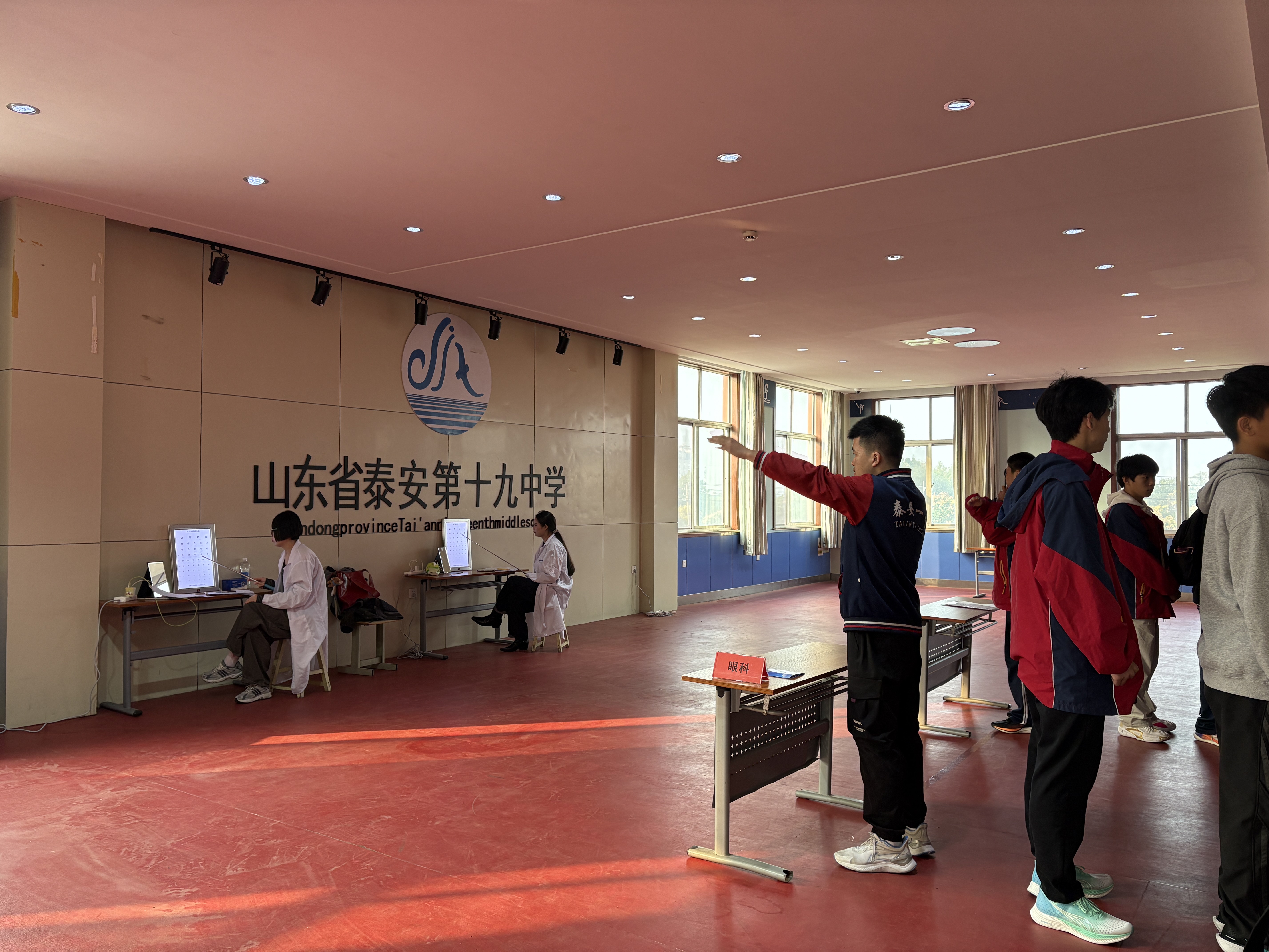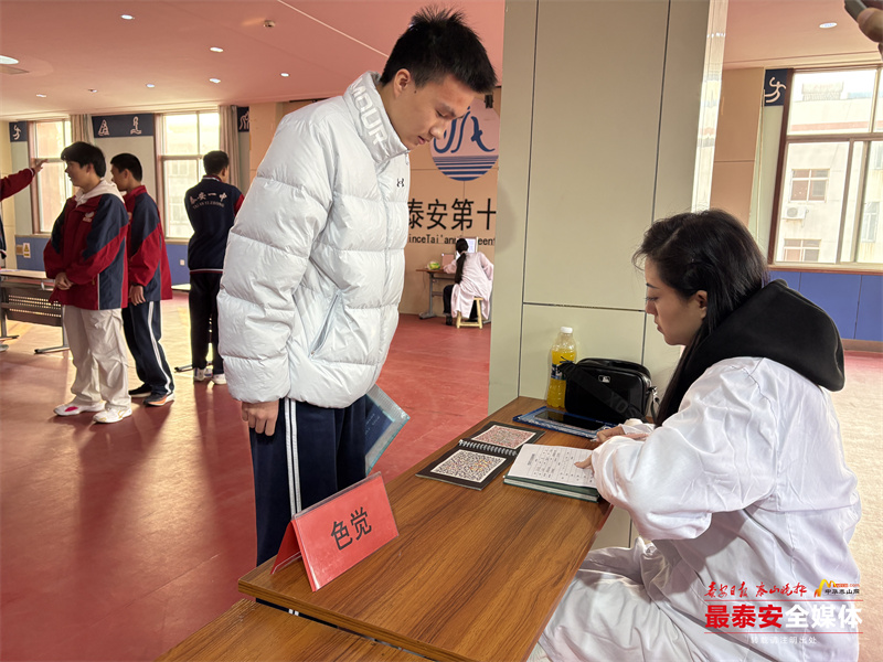 当日8时30分,记者来到泰安十九中检测现场,看到报名参选的学子们手持表格,在工作人员的引导下依次接受眼科、色觉、口腔、外科检测,每一项检查都关乎着他们能否离梦想更近一步,这些稚嫩的脸庞上写满了紧张与期待。
