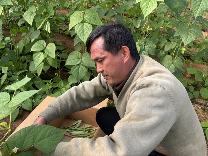 “今年蘑菇行情不好,我们就赶着秋季改良种植青菜,收成特别好。”基地承包大户彭涛介绍,他承包了村内的37个大棚,原本种植贝贝南瓜,及时调整品种后,5块多一斤的芸豆单棚就摘了200多斤。据了解,大棚一年可种两茬,单棚成本约7000多元,其中通过村集体扶持,一个大棚一年租金仅2000元,种植的芸豆、有机菜花等蔬菜,不仅供应本地市场,还能直达北京新发地,让村民在家门口就能实现稳定增收。